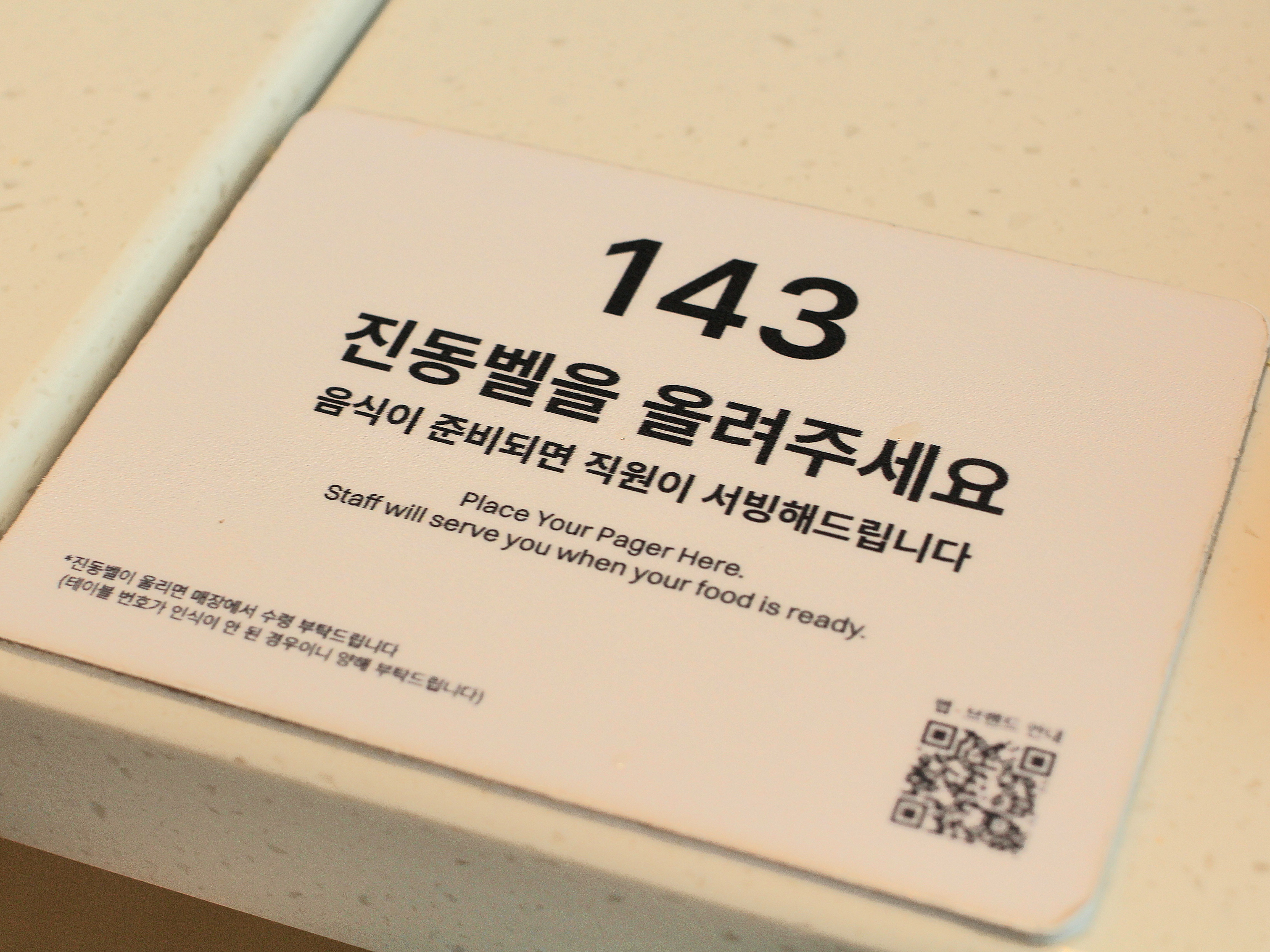 주문하고 받아온 진동벨을 테이블에 있는
