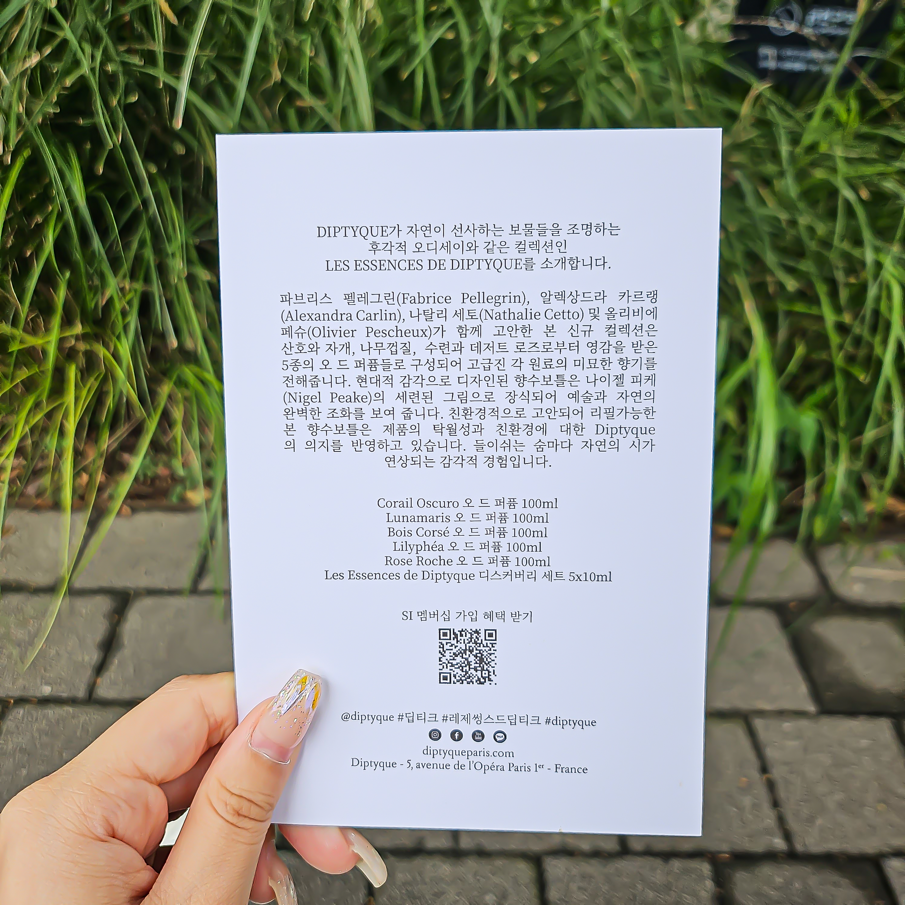 향을 좋아하는 분, 향기가 안나는 자연을 어떻게 담아냈는지 궁금한 분, 딥디크의 신제품을 시향해보고싶으신 분 등등 성수 9월 10월 팝업스토어로 딥디크에 방문하시면 힐링하실 수 있으실 거에요 비록 사전예약을 못하고 가서 샘플을 못 받은건 아쉬웠지만 딥디크 신제품 시향할 수 있어 좋은 시간이었답니다