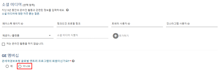 시민권 관련 질문에 해당사항 없으면 "아니오"